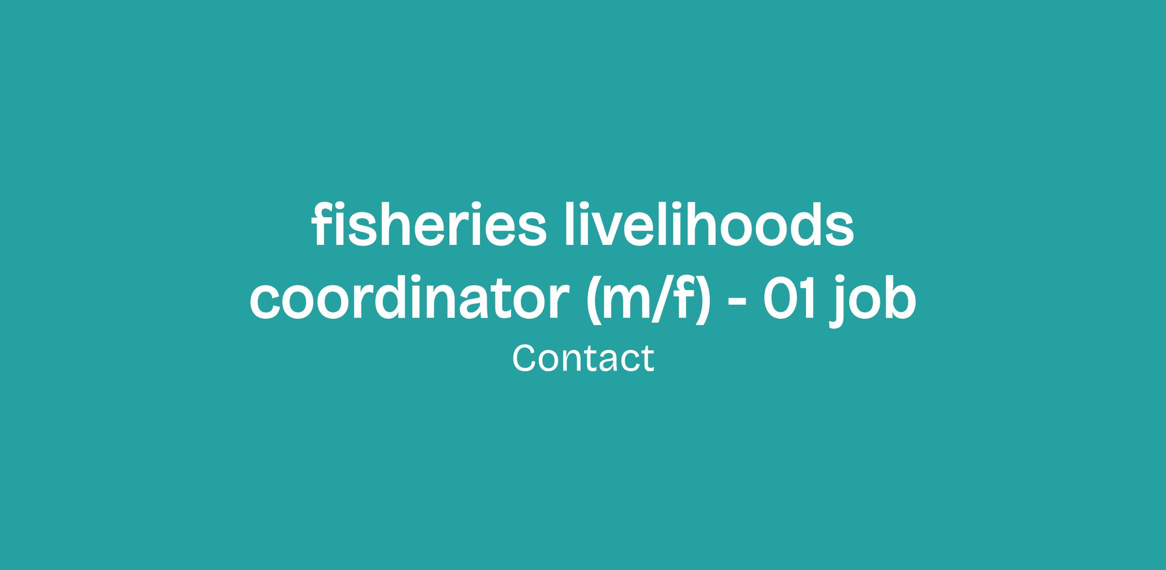 Under the guidance of the Livelihoods Supervisor, The Fisheries Livelihoods Coordinator will be responsible for the delivery of the fisheries livelihood commitments to support reestablishment and development of livelihoods of project-affected persons and host communities.