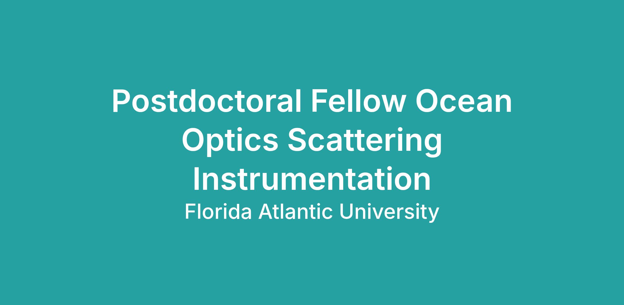 The Harbor Branch Oceanographic Institute (HBOI) at Florida Atlantic University is seeking a Postdoctoral Fellow of Ocean Optics and Scattering Instrumentation.
